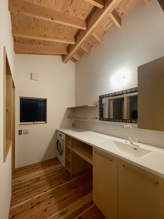洗面室の壁をランマとして抜いたのも夜だと更に効果的な印象です。